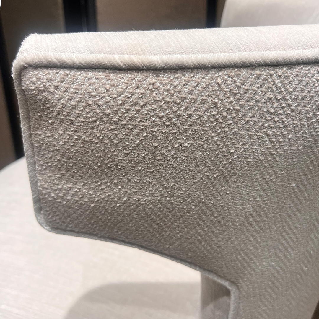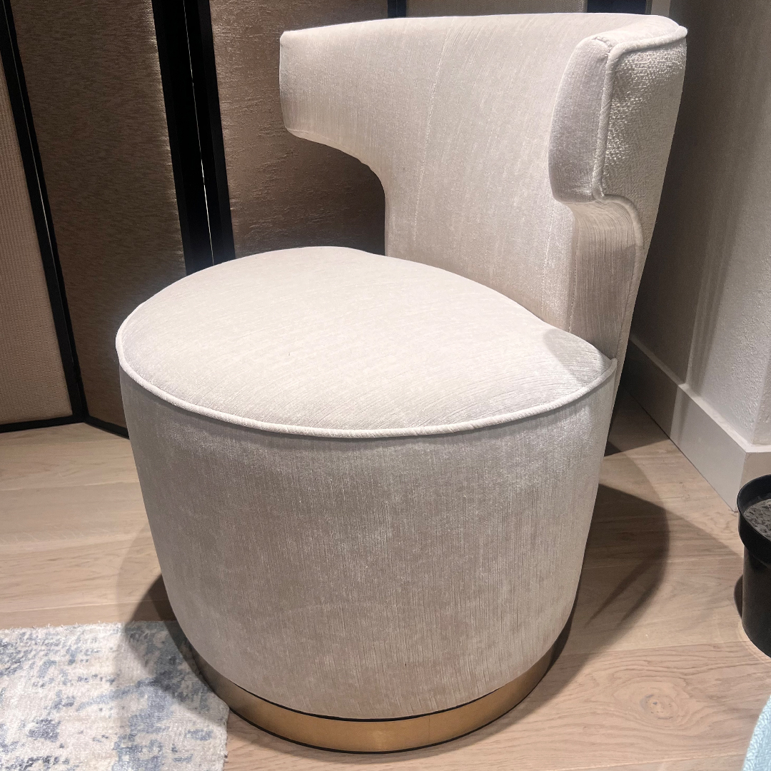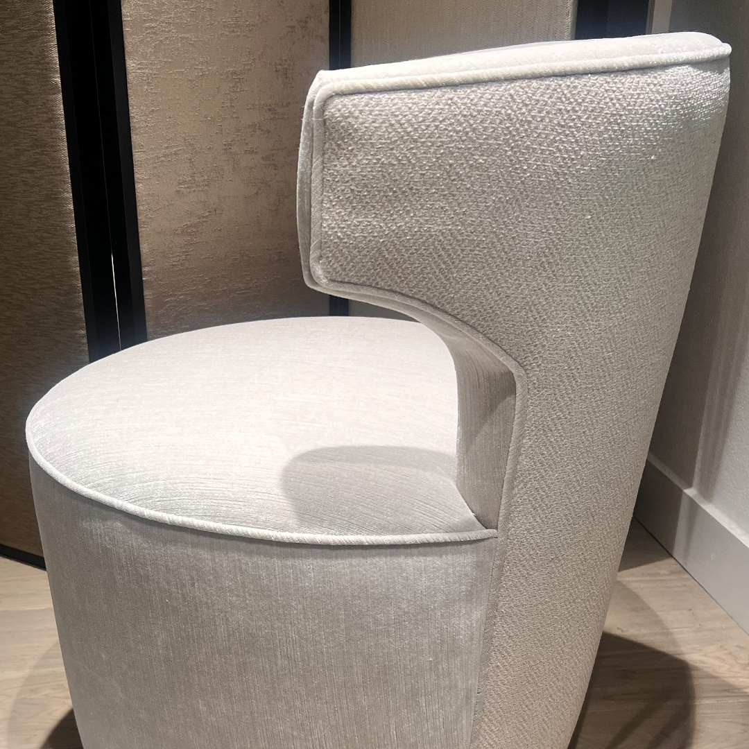 The Allen Armchair is available as per seen from slide 2 photos, in the contrast front and back upholstery and swivel mechanism. The plinth is in brushed gold aluminium. Available in x 2 quantity and ready to elevate any interior space!
