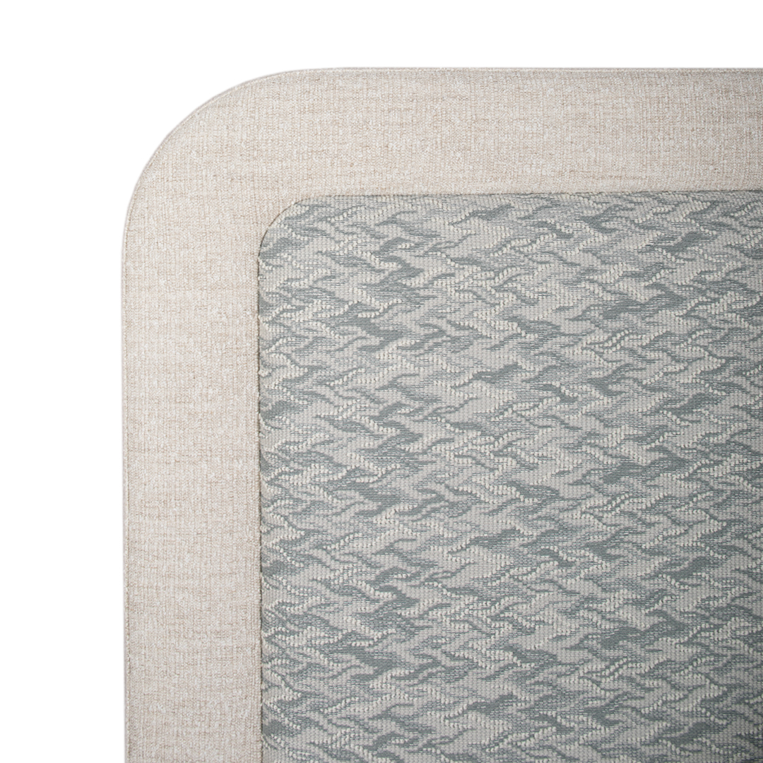 The Barlu is simplistic luxe with its curved, double band edging. Feel free to contrast the fabric on the inner area or use one fabric throughout.
