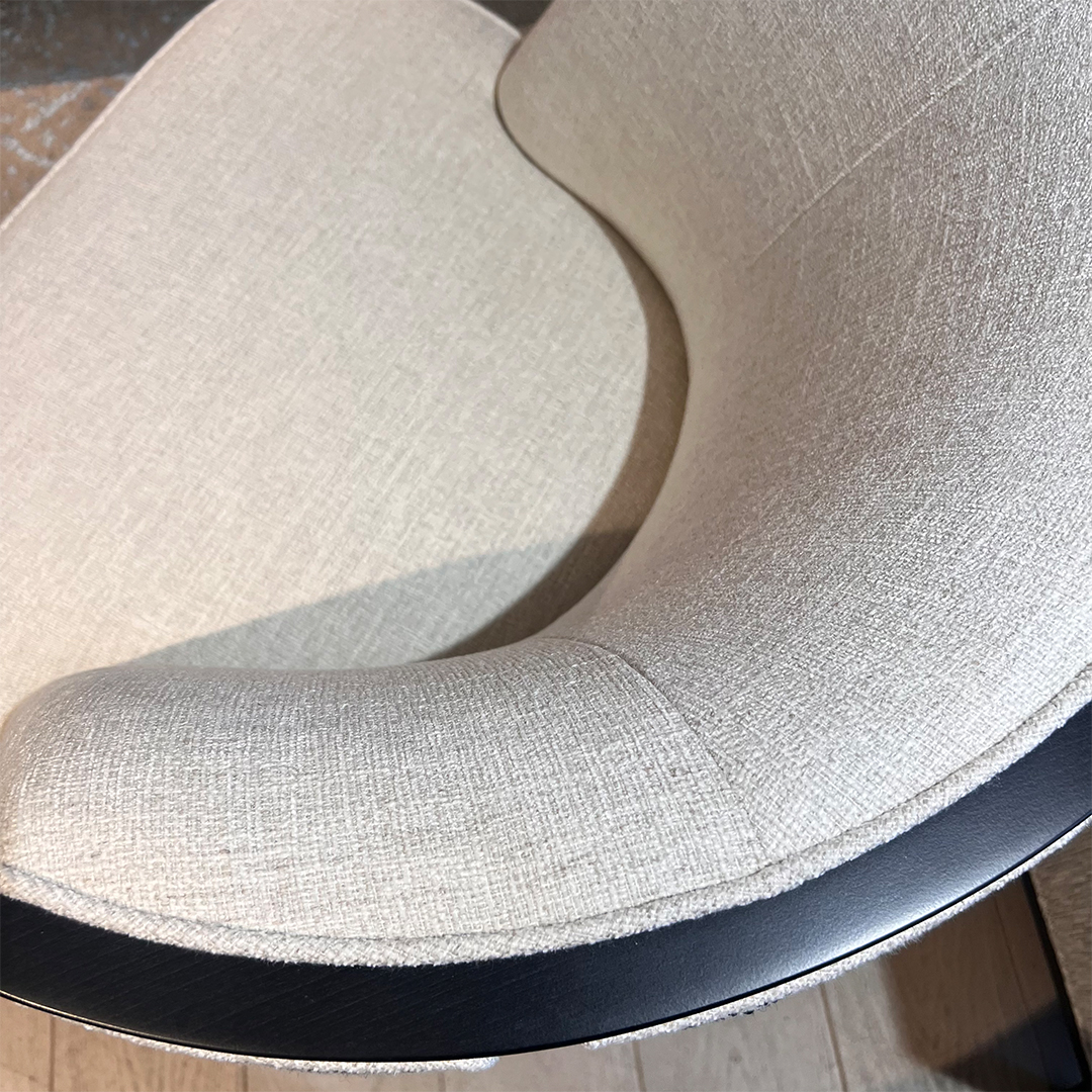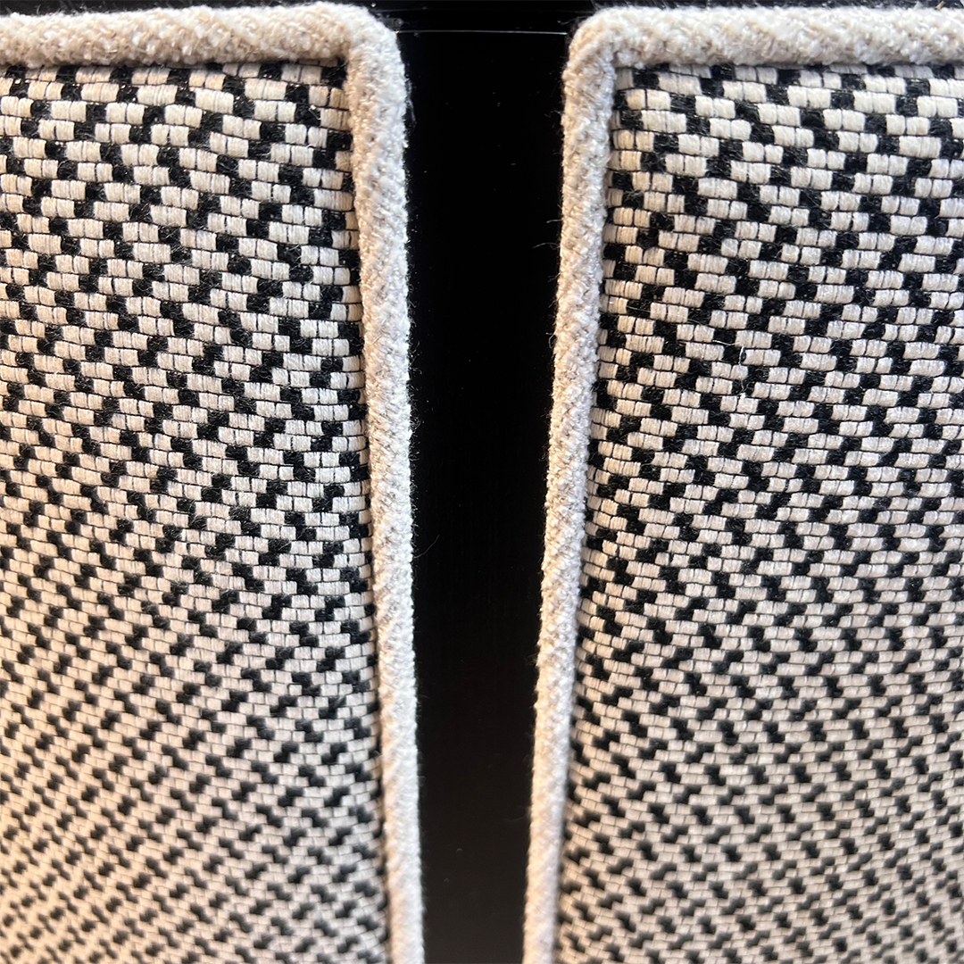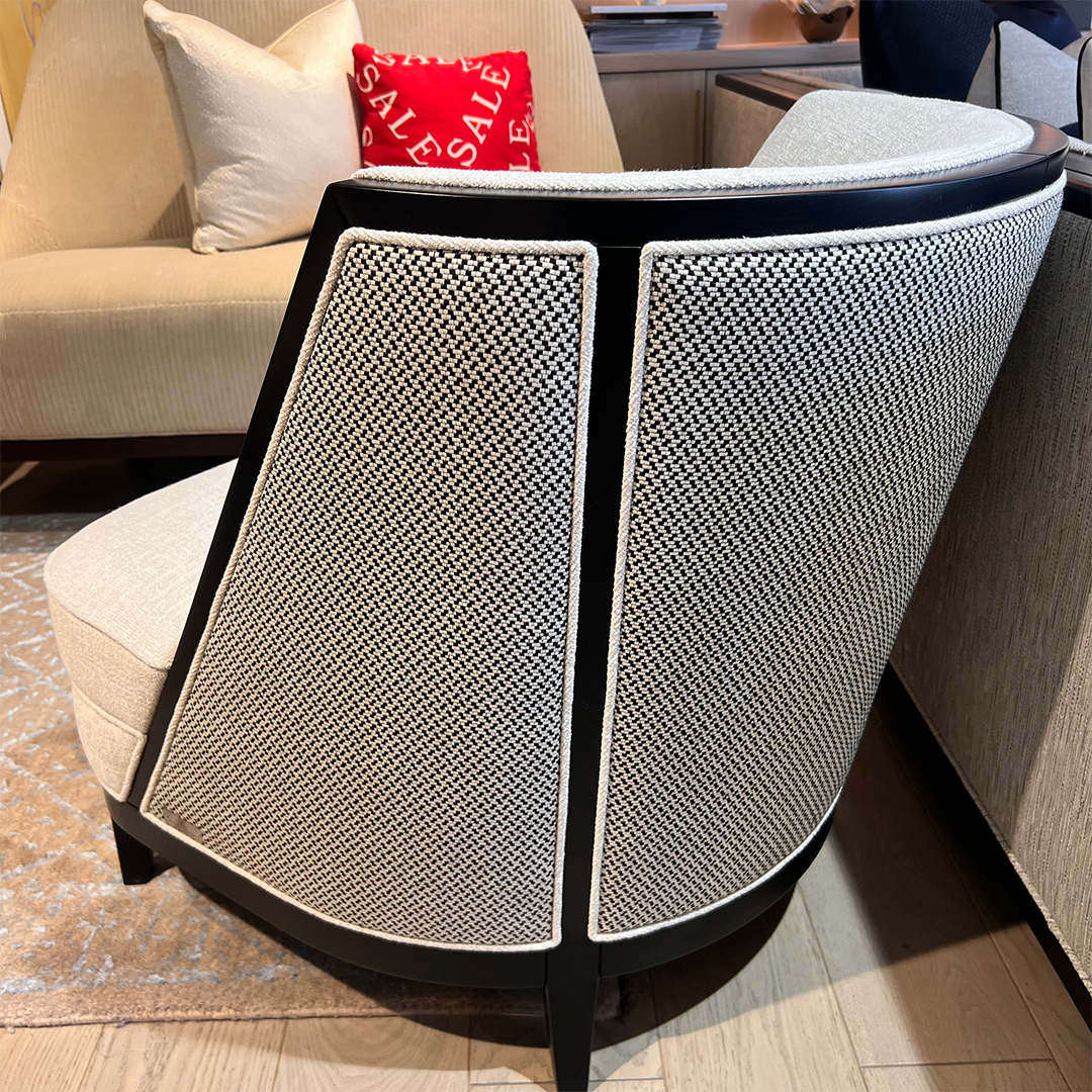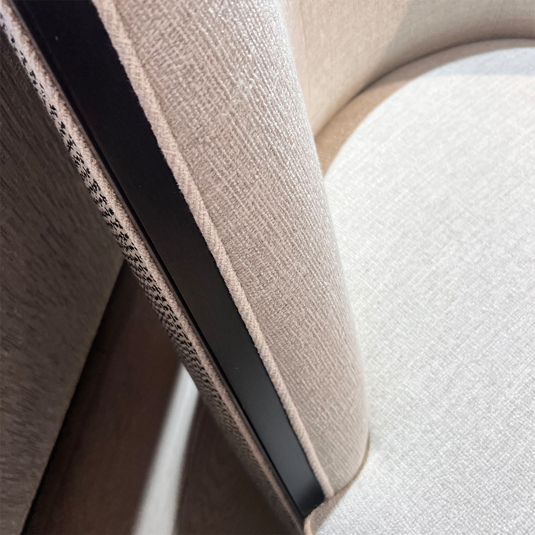 The Coss Armchair is available as per seen from image 2 onwards – in x 2 quantity, in the stunning mixture of linen mix front fabric and semi-pattern spot contrast back. The piping detail against the black wood frame adds the dramatic yet enticing appeal to this Coss, completing the ultimate impeccable look with added comfort.