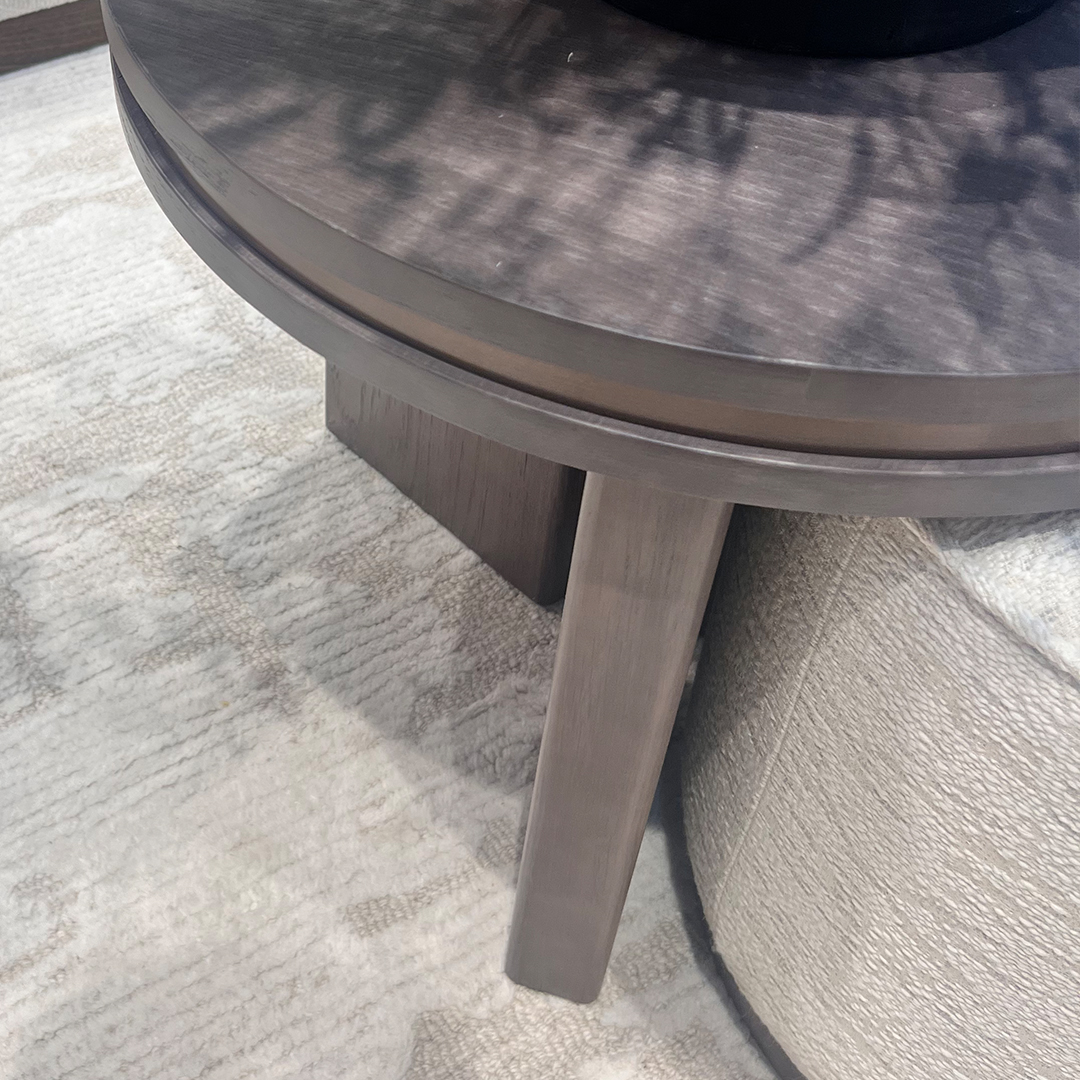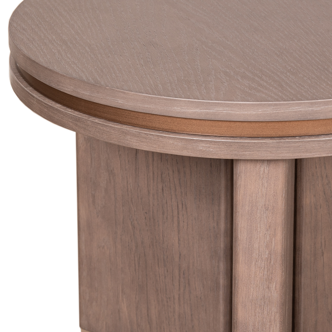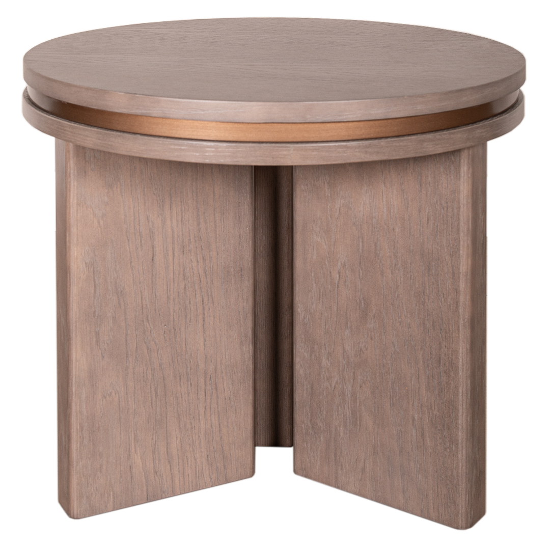 Wood Detail: Grey Stained Wood with brushed bronze paint in-lay
