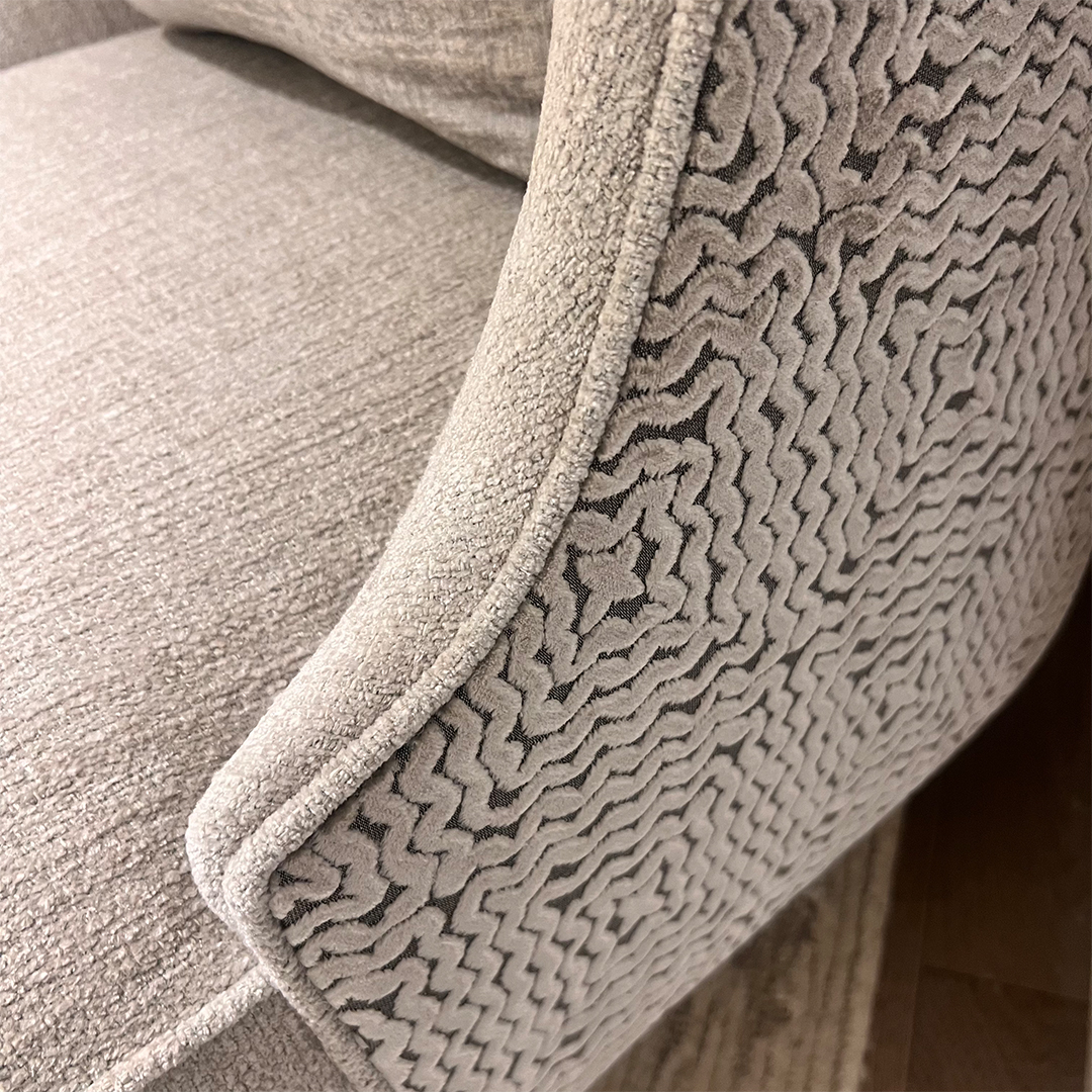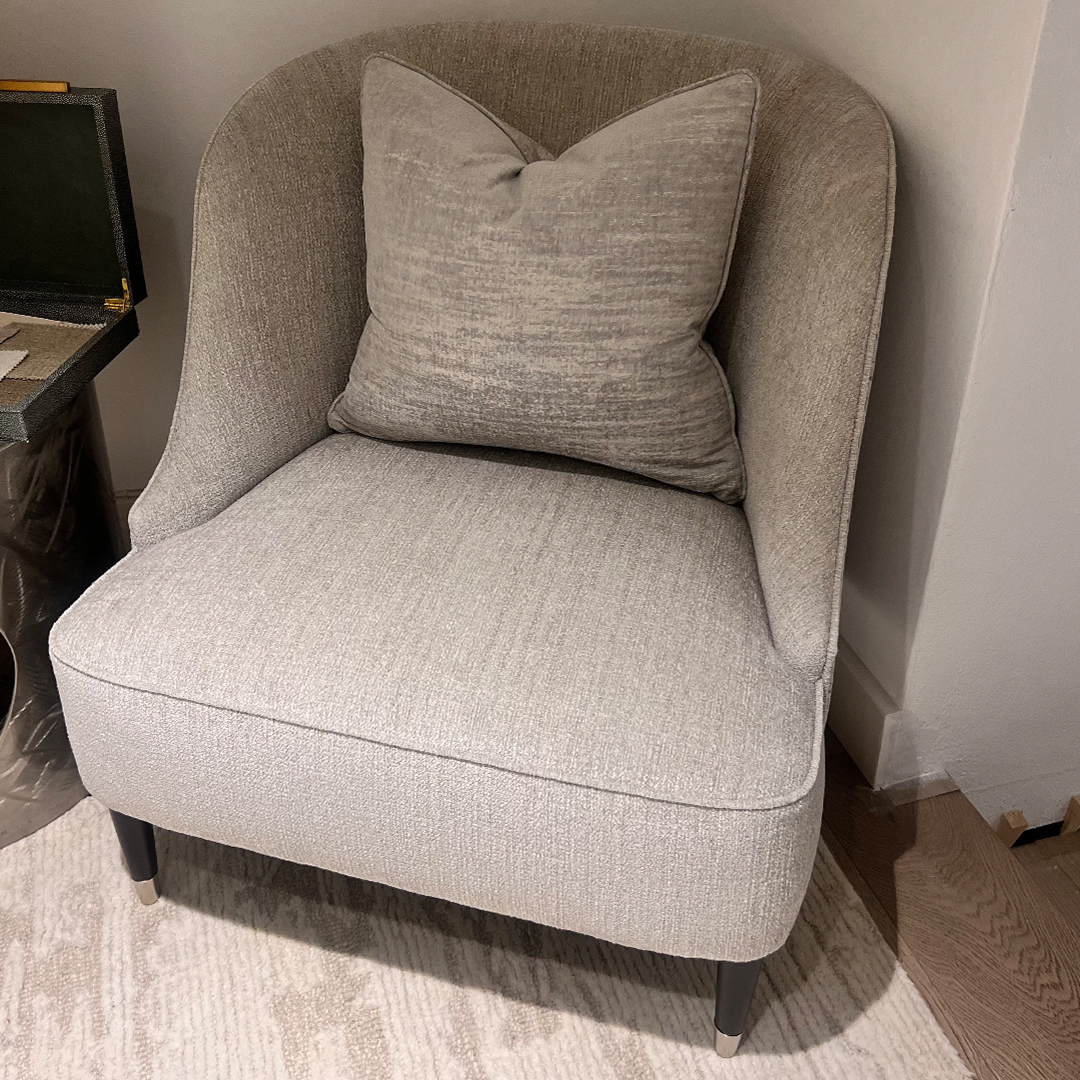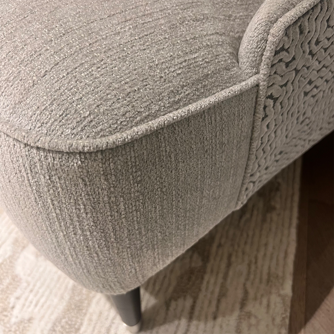 Fabric Detail: Front: Grey plain fabric, details TBC, Back: Ninq Campbell, Mourlot Velvet
