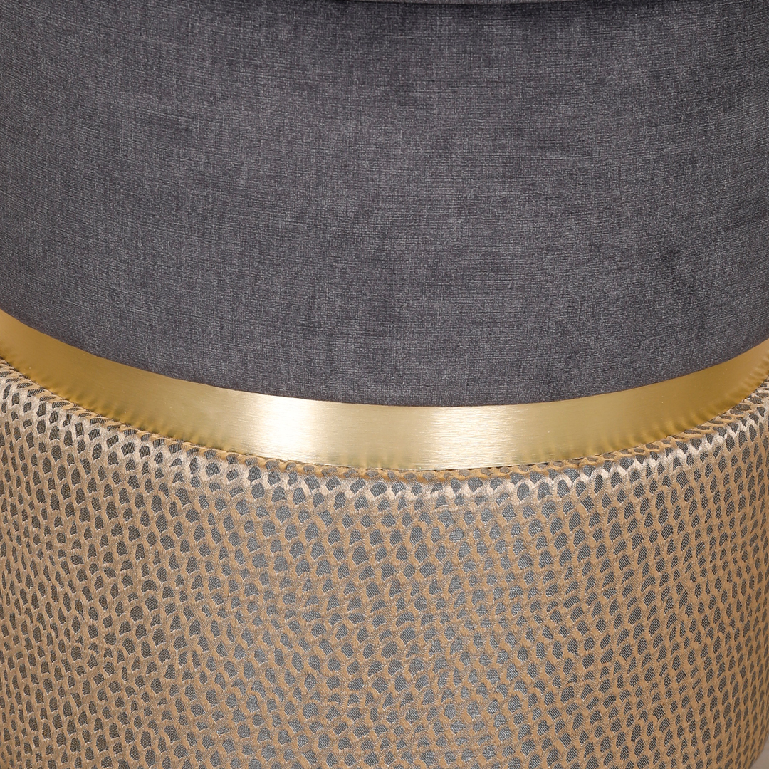 The Melis Cube is available in x 1 quantity as per seen, in the top navy velvet and bottom shimmery pattern upholstery. Finalising with the brushed gold aluminium band for the captivating factor!