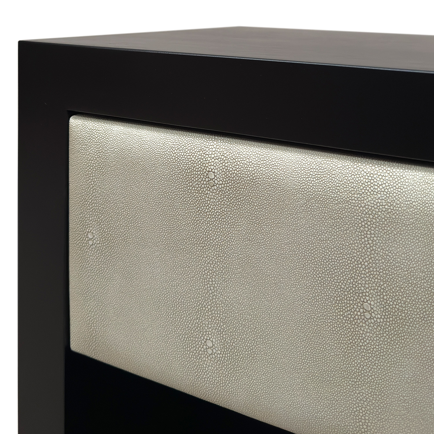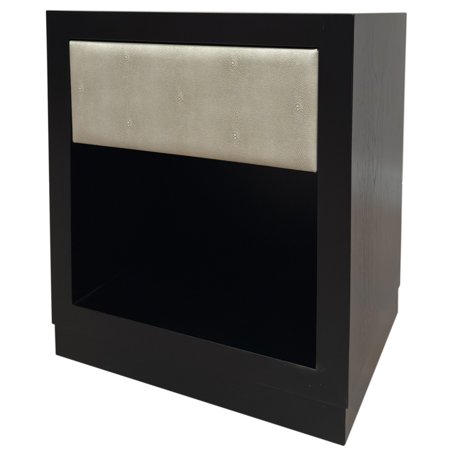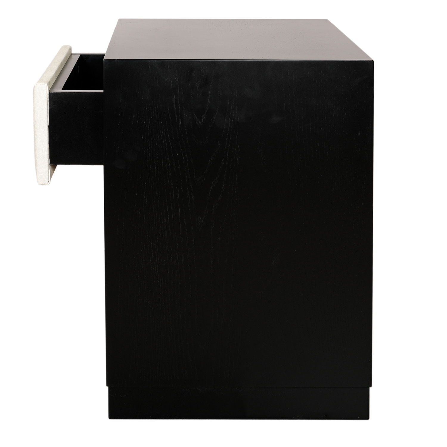 The Muratti bedside table embodies simplistic luxury with its clean, modern boxy shape. The upholstered drawer adds a subtle softness, while the open space below offers practical storage. Its overall design is minimalist and contemporary. Please note that the drawer can be customised with any fabric or leather upholstery of your choice.