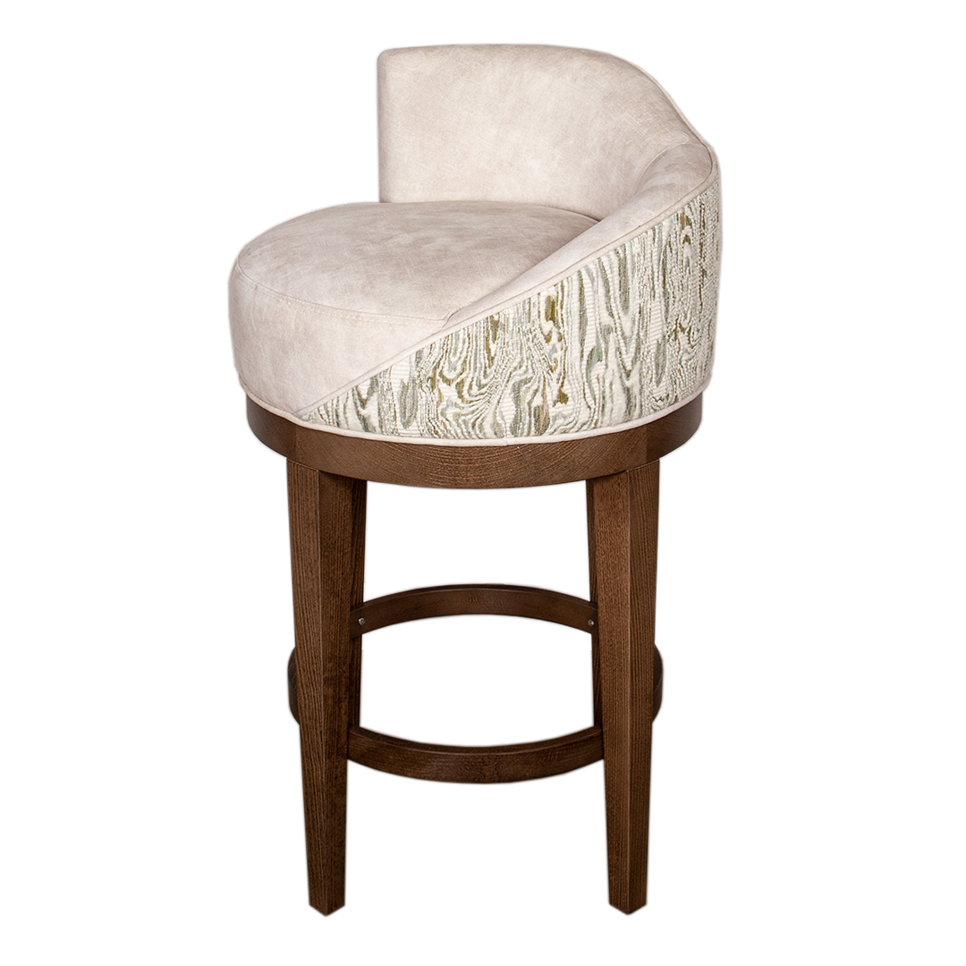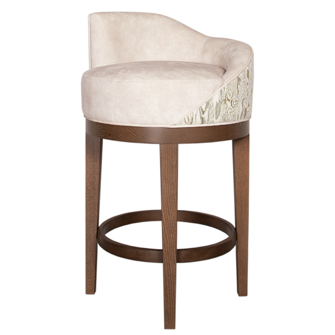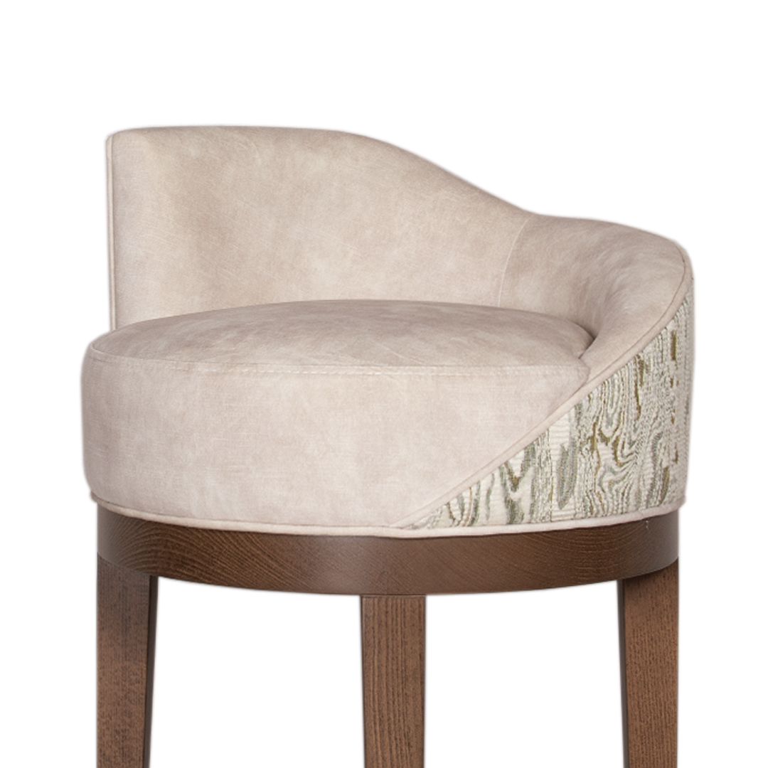 The Nyla bar stool stuns with its rather quirky yet attractive curve back. Nyla is set to embrace the countertop with its unique style, whilst also providing the comfortable back. The back upholstery ca either be with contrast fabric or in the same front fabric / leather.