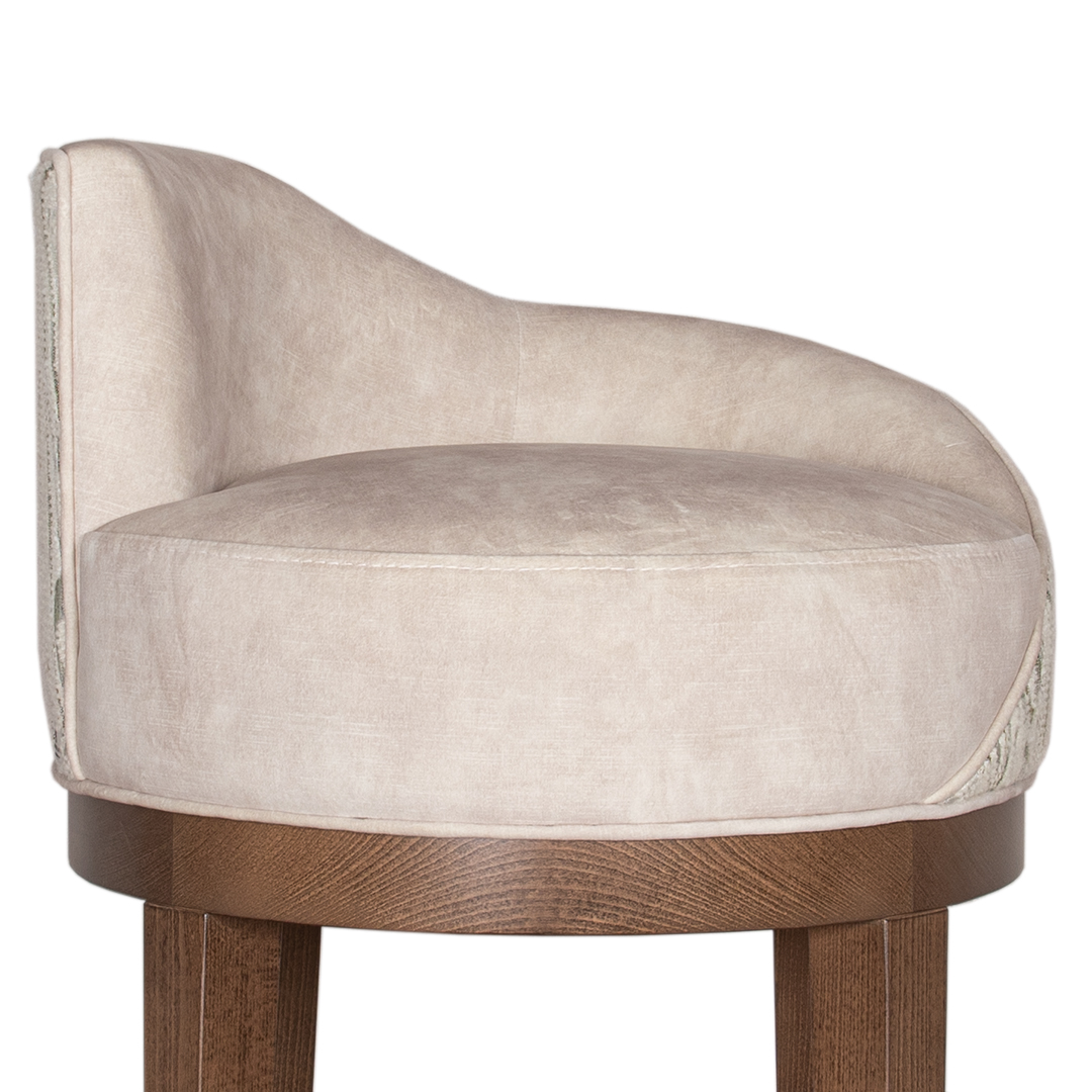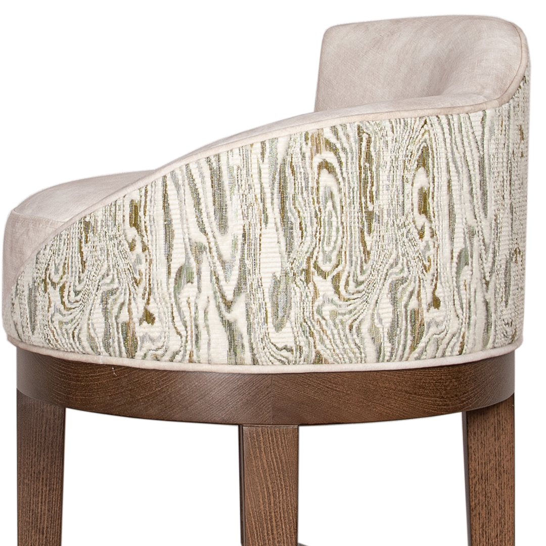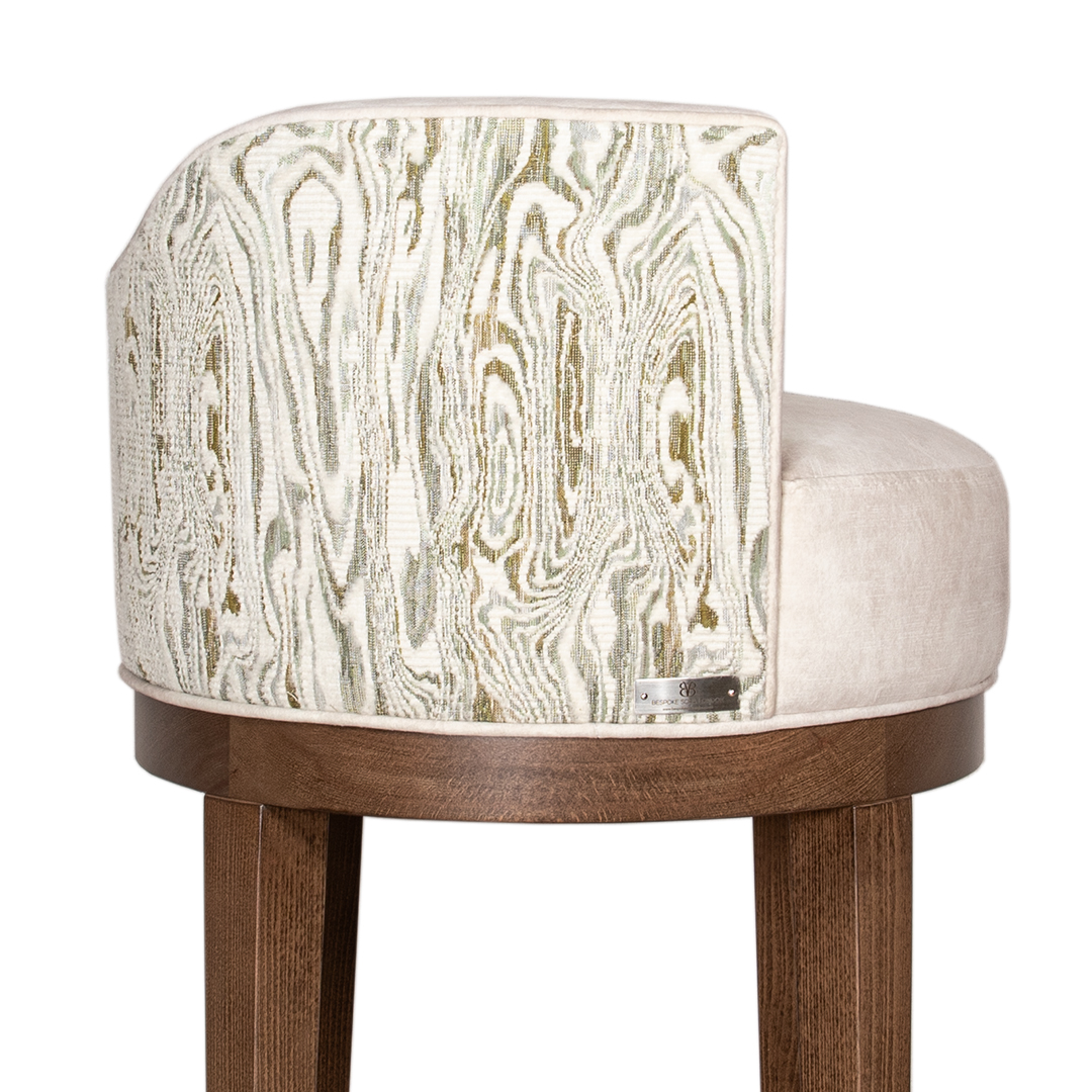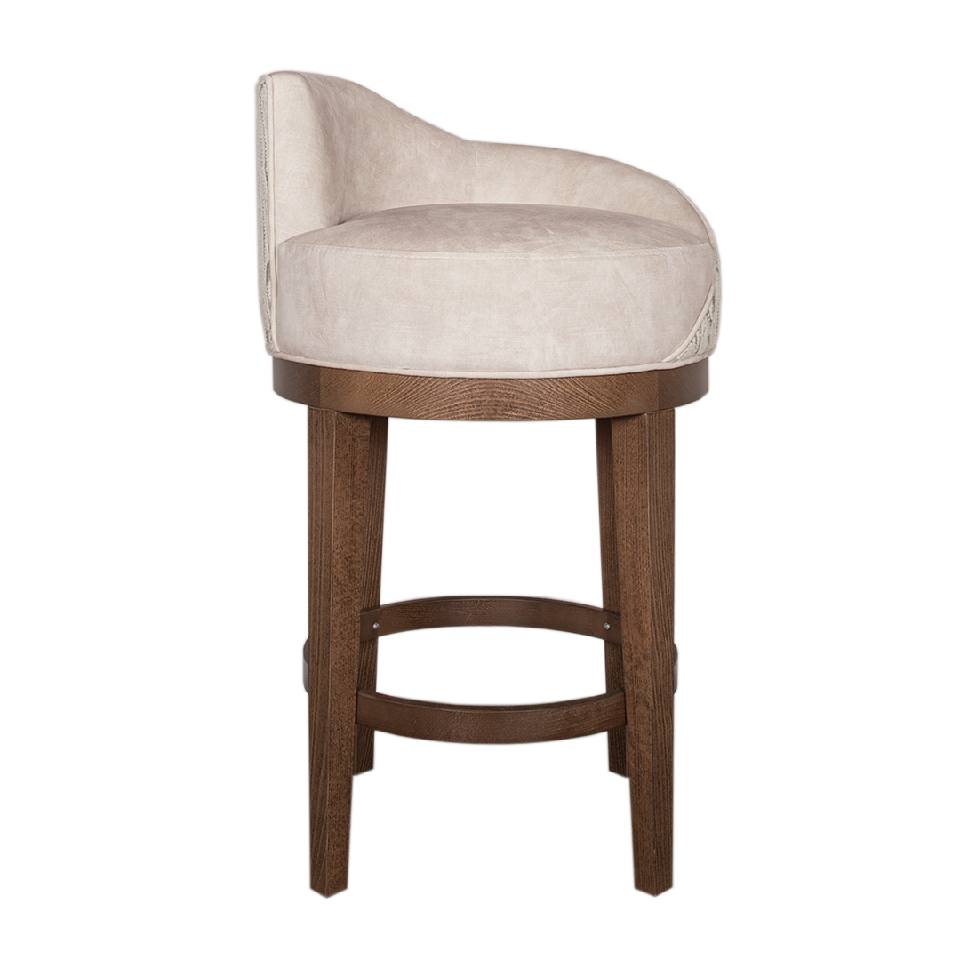 The Nyla bar stool stuns with its rather quirky yet attractive curve back. Nyla is set to embrace the countertop with its unique style, whilst also providing the comfortable back. The back upholstery ca either be with contrast fabric or in the same front fabric / leather.