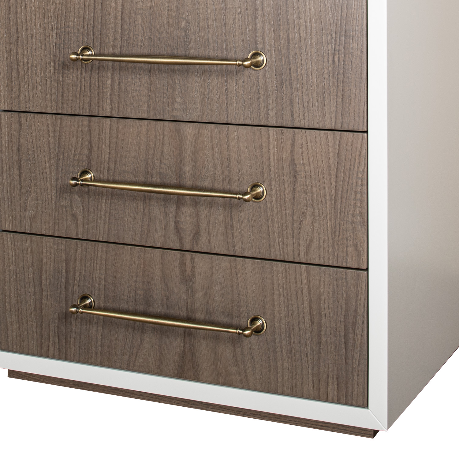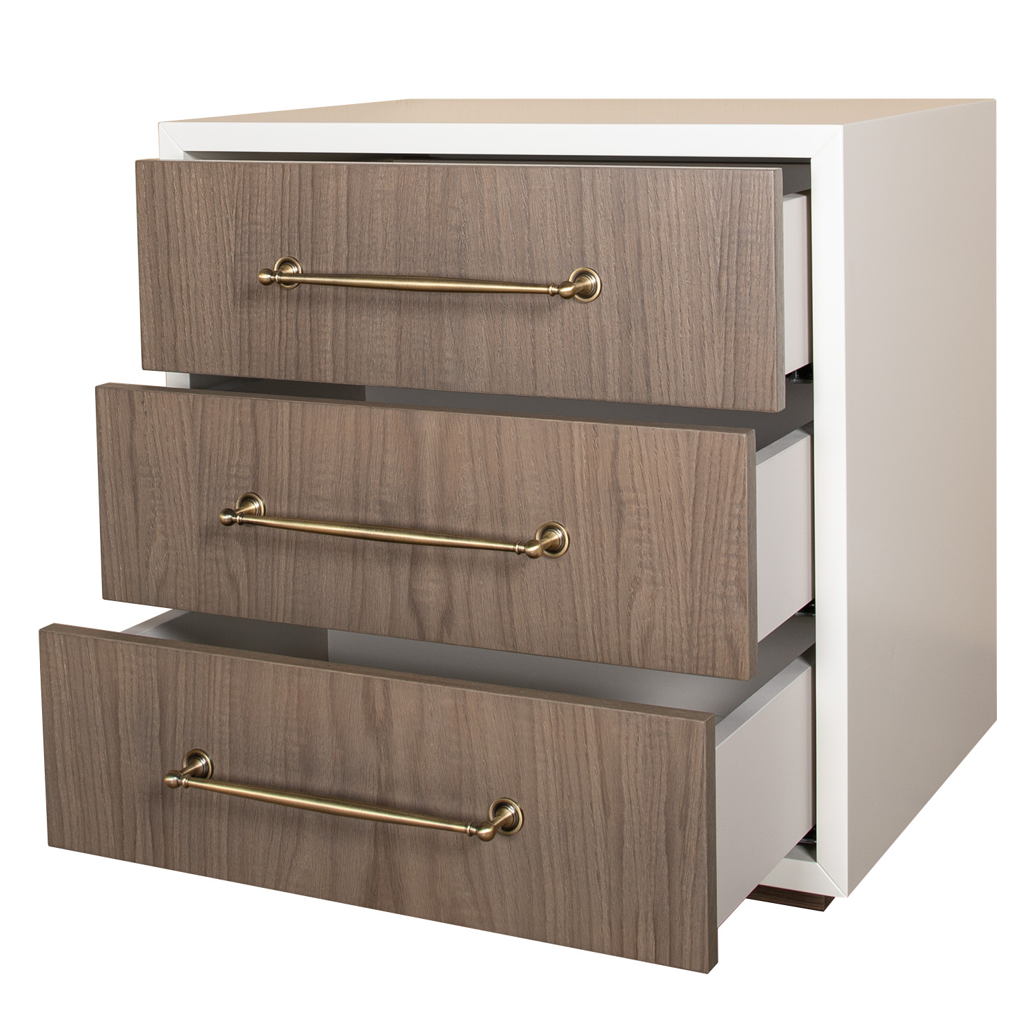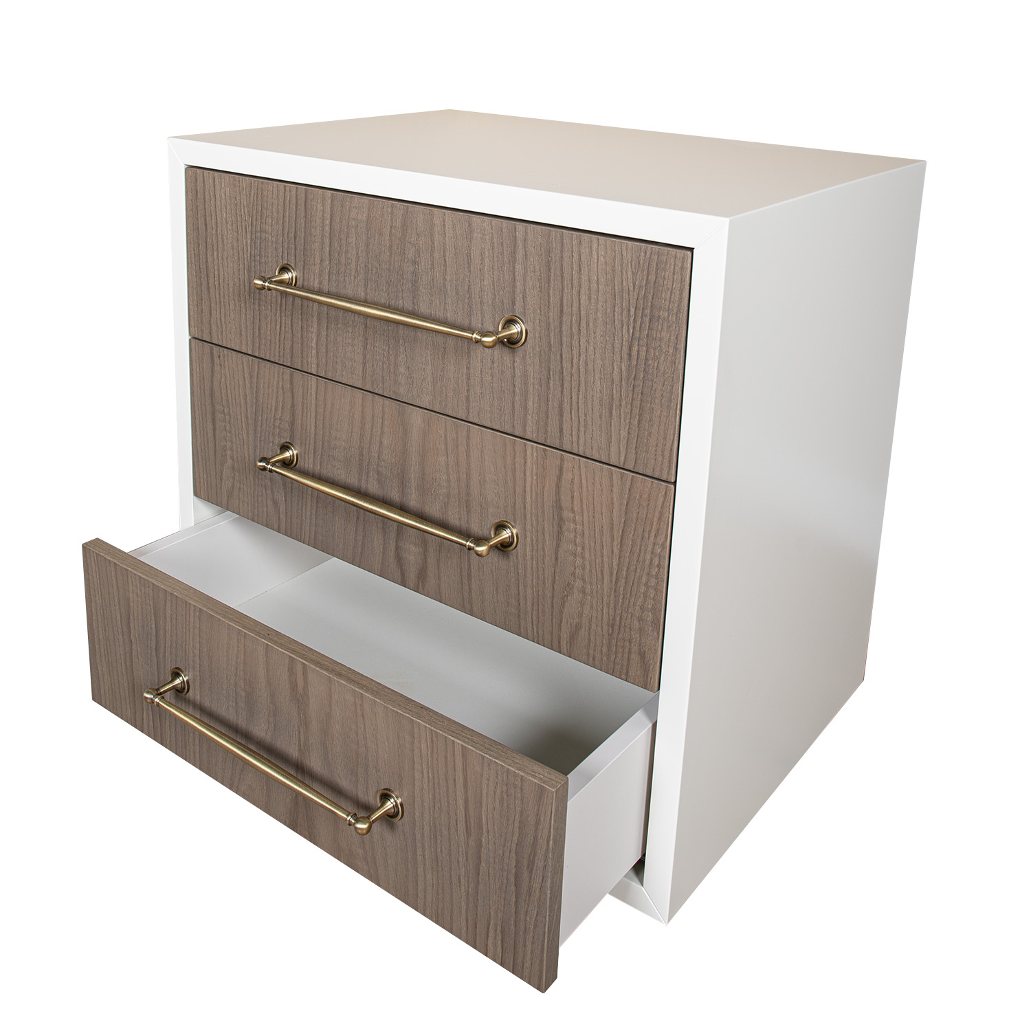 The Selva bedside table comprises of three easy-glide drawers and sleek metal handles. The clean frame of the Selva keeps the look fresh and contemporary whilst practicality is provided through its offering of generous storage space. Please note the handle finishes are available through various different options.