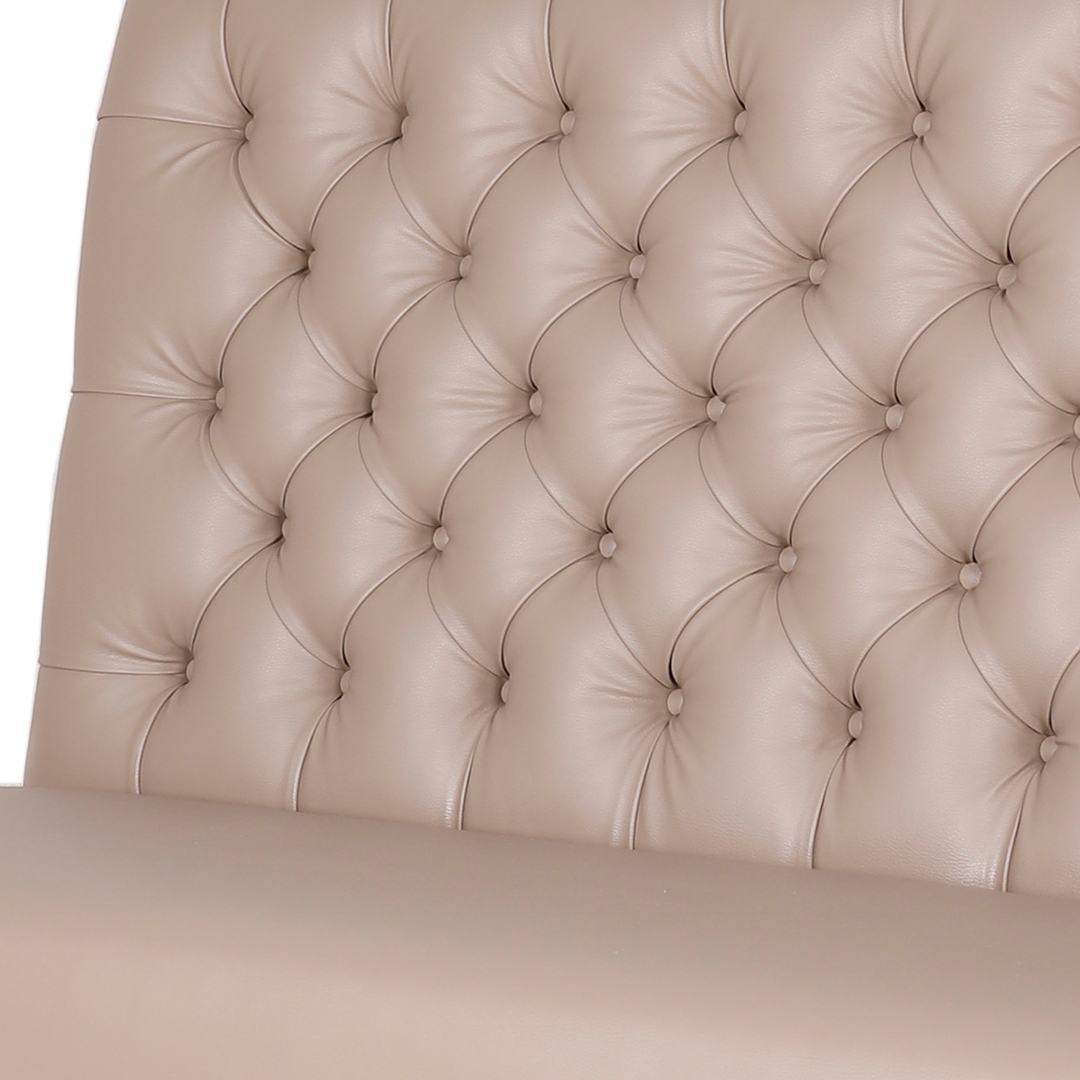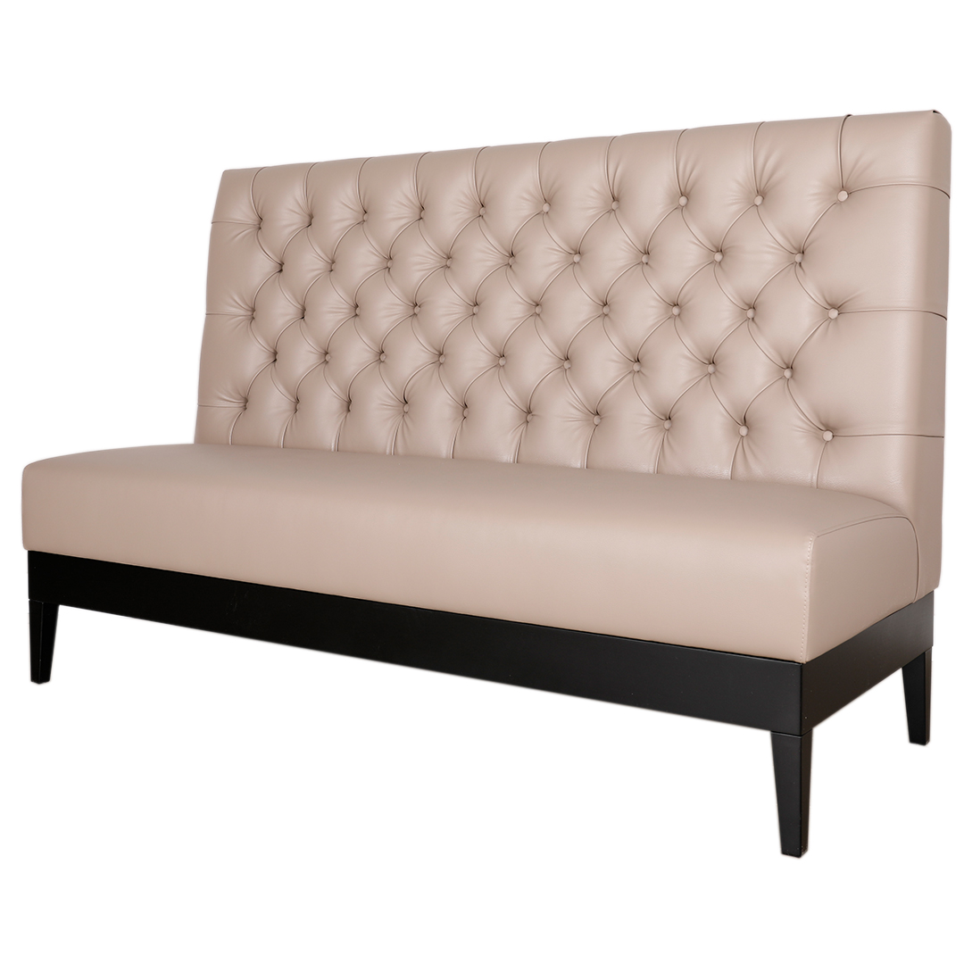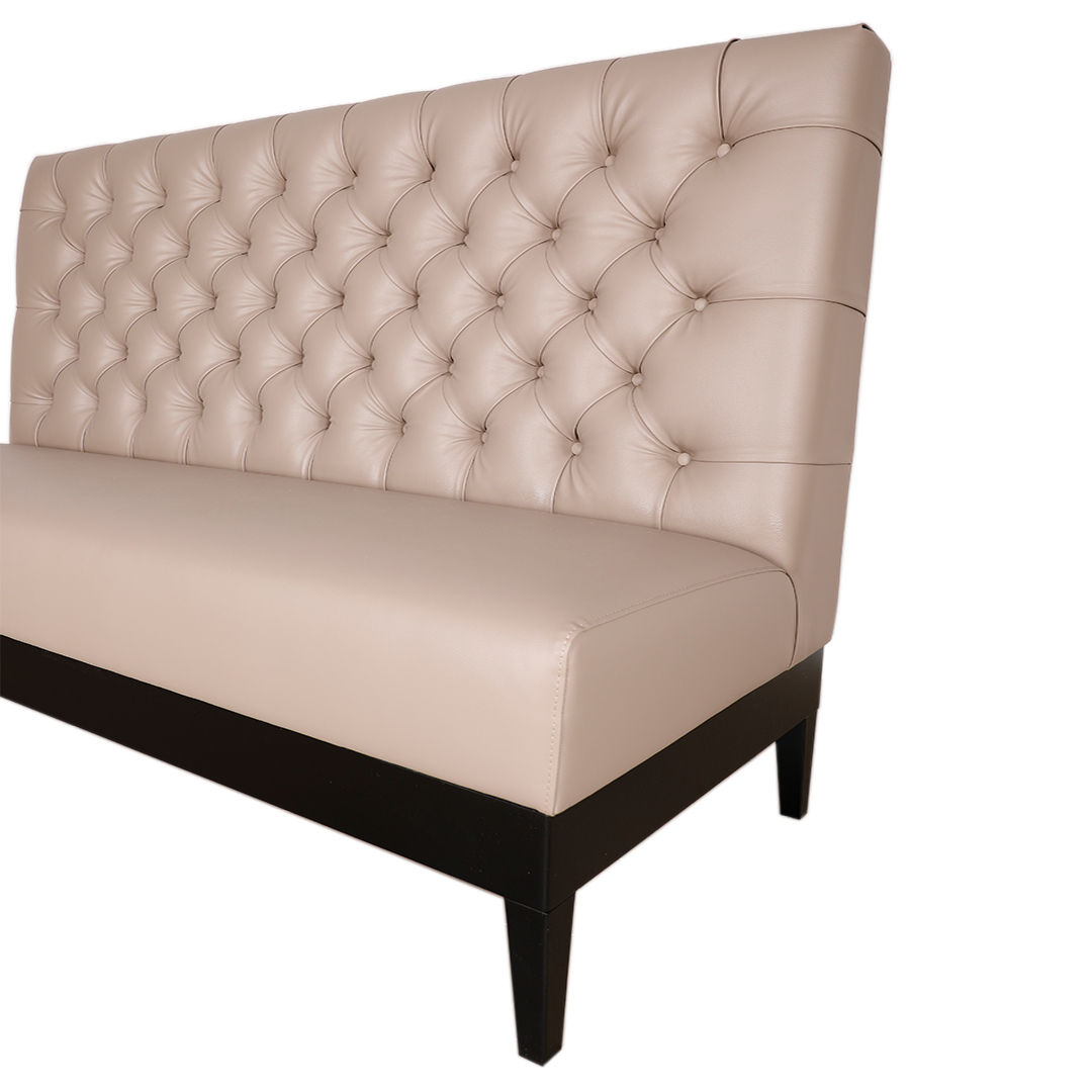 Our Voila Banquette Bench is a versatile piece, stating a timeless style. The elegant design features intricately tufted leather, a smooth cushioned seat, and a dark wood base, blending classic comfort with modern sophistication.